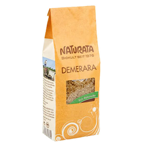 Суровата тръстикова захар Демерара Натурата има по-едри кристали отколкото суровата тръстикова захар Сирамена и съдържа малко повече меласа. По-голямото съдържание на меласа и придава по-тъмен цвят. Суровата тръстикова захар NATURATA се произвежда от органични ферми в Бразилия. Използвайте за подслаждане на храни и напитки, в които се желаете да добавите лек малцов вкус. За да се получи този вид захар, тръстиката се смила и сокът от първата преса се сгъстява, което води до образуване на гъст тръстиков сироп. Той се дехидратира, оставяйки едри кристали кафява захар. Този продукт не се подлага на допълнително рафиниране. СЪСТАВ: сурова тръстикова захар* демерера. *Продукт на био земеделие. Хранителна стойност на 100 гр. продукт: Енергийност 1663 kJ / 396 kcal Мазнини 0,0 g от които наситени мастни 0,0 g Въглехидрати 99,6 g от които захари 99,6 g Протеини 0,1 g Сол 0,0 g Пакетирна в Германия