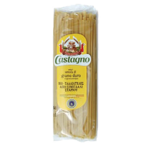 Компанията Castagno ви обещава единствени по рода си, вкусни и изключително качествени биологични продукти. От обработваемите полета направо на вашата маса. Този продукт е изключително подходящ за хора на диета, за вегетарианското и веган хранене, и изобщо за един здравословен начин на живот. Без яйца Без месо Без мляко Не съдържа сол, захар, лактоза и други добавени съставки Всичките продукти на Castagno се произвеждат от 100%  сертифицирани с високо качество биологични съставки.  Технологията на сушене се осъществява на ниски температури с цел производството на висококачествени продукти без добавяне на допълнителни съставки. СЪСТАВ: бяло брашно от грис* *Продукт на био земеделие. ПРИГОТОВЛЕНИЕ: Време за варене – 5-7 минути.