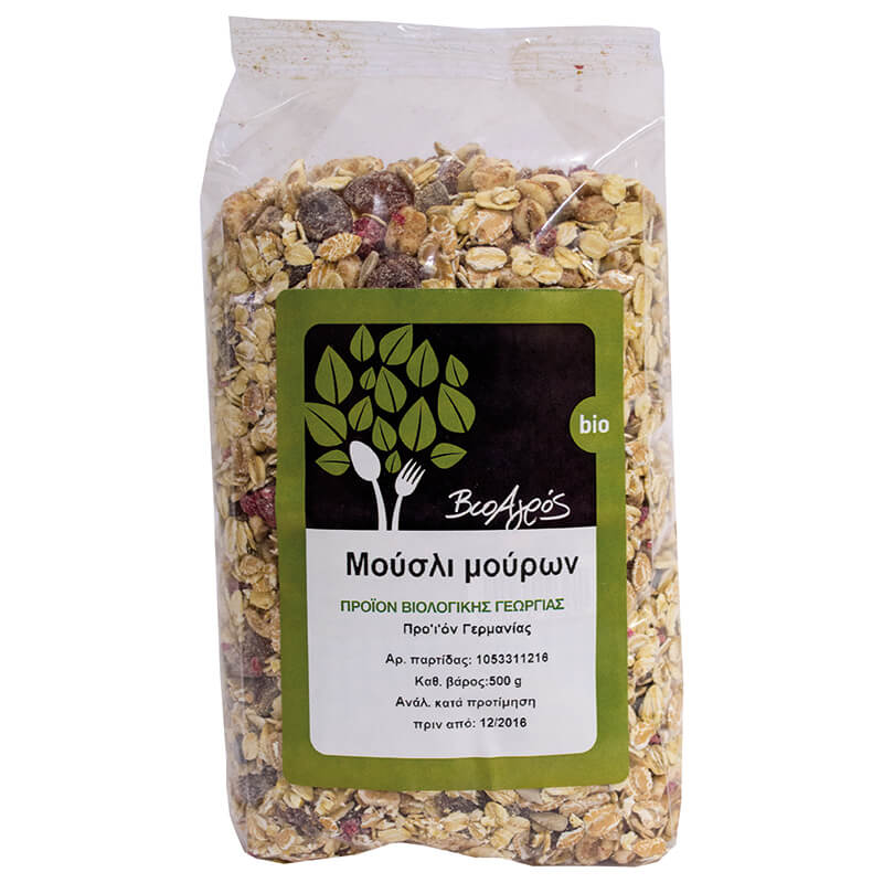 Съдържание: Пълнозърнести овесени люспи *, сушени плодове *, (султанина * 21% (със слънчогледово масло *), смокини *, малини * 1%, кайсии *, ябълки *, червен касис * 0,7%, фурми *, сливи *, ягоди *) , пълнозърнест тирци от спелта *, пуканки от спелта * (спелта*, мед *), слънчогледови семки *, СУСАМ *, оризово брашно * (* продукти от биологично земеделие)
