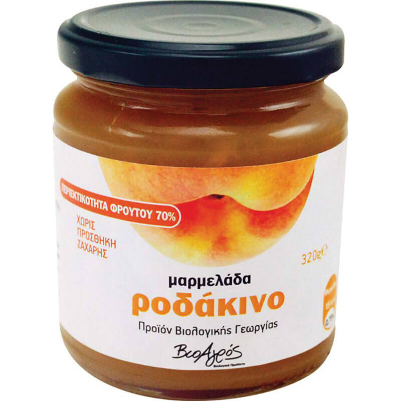 Състав: Праскови 60%, концентрат от ябълково пюре, концентрат от ябълков сок, желиращ агент: пектин, регулатор на киселинността: лимонена киселина