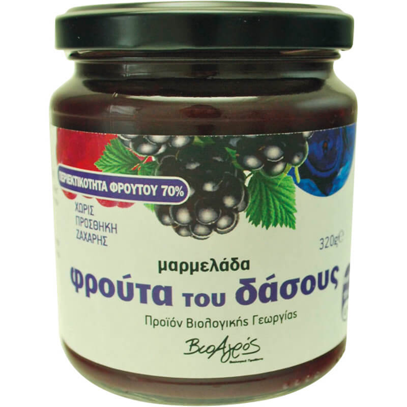 Състав: Плодове с променлив процент (боровинка, къпина, червен касис, малина) 65%, концентрат от ябълково пюре, концентрат от ябълков сок, желиращ агент: пектин