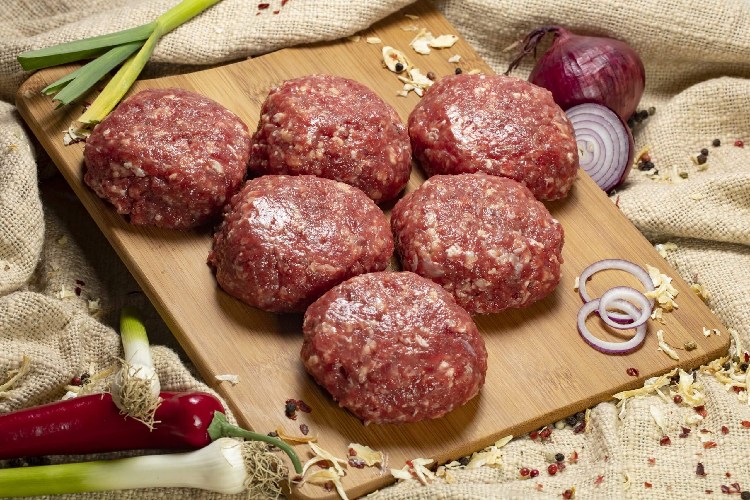 6 броя телешки кюфтета. Грамаж на едно кюфте: 80г. Съдържат мляно месо, сол, галета, чубрица, кимион, сладък червен пипер, млян червен пипер. Подходящи за приготвяне на: скара, тиган и барбекю.