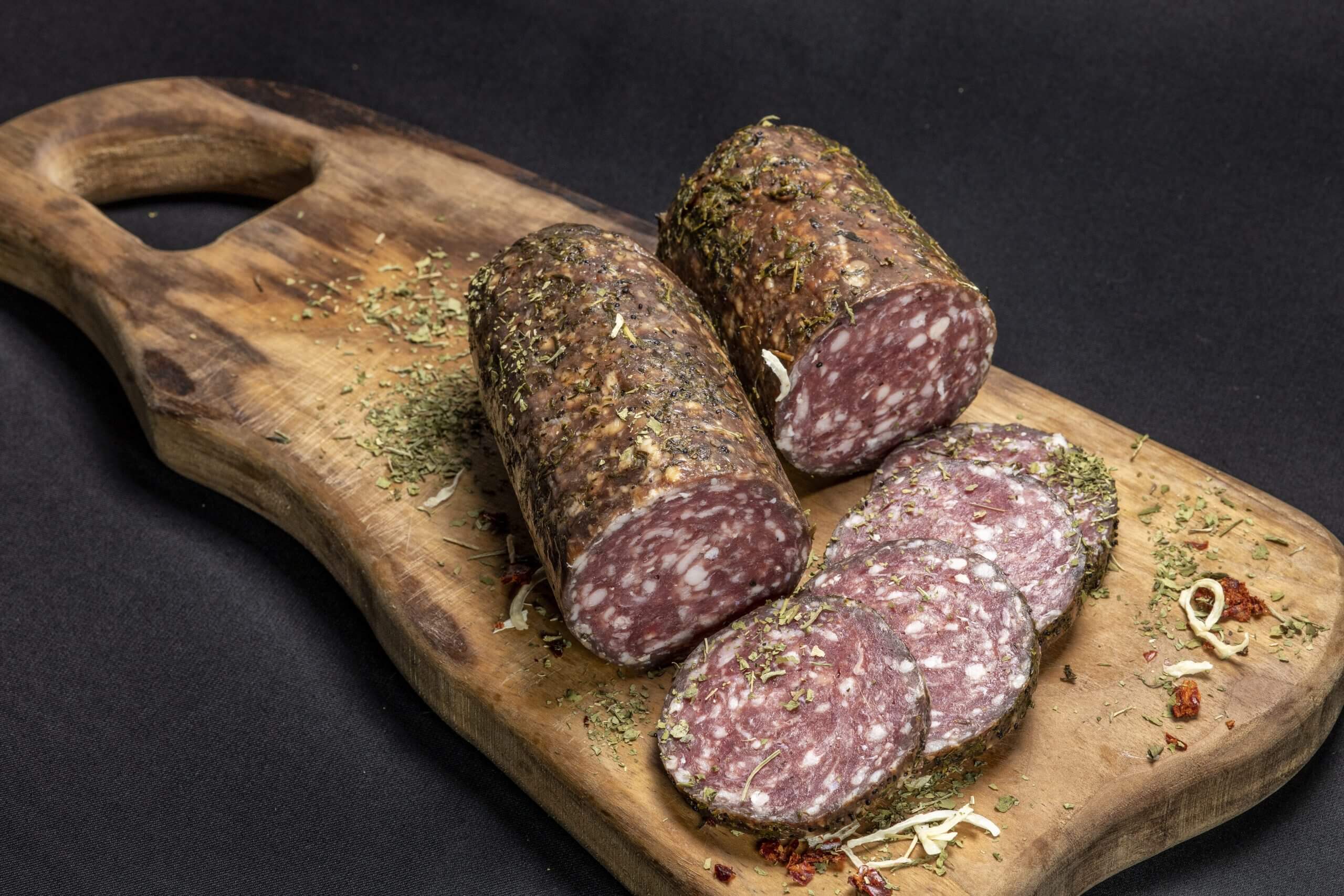 Овкусен с натурални подправки, като колбасът е поръсен с характерната за рецептата чубрица.